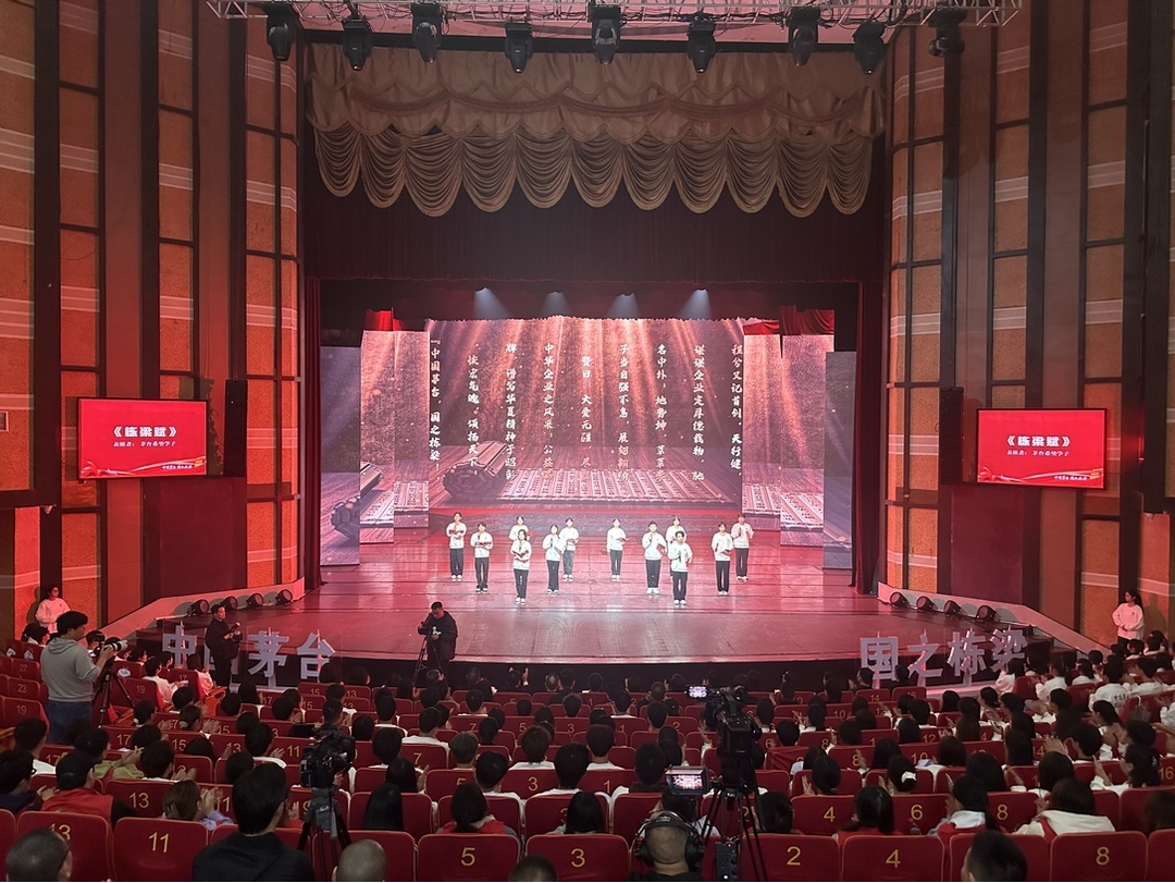 11月6日,“伟大转折·奋进征程”——贵州希望工程圆梦行动2025年省级示范活动暨茅台奖助学金捐赠仪式在遵义隆重举行。我校艺术与设计学院播音与主持专业12名同学参加活动并献词《栋梁赋》,其深情并茂、铿锵有力的演绎赢得了主办方与现场观众的高度评为呈现最佳舞台效果,在近一个月的紧张排练中,同学们在专业老师、行业导师指导下,逐字推敲台词,深入理解作品情感内涵,反复进行舞台适应训练,将课堂所学的吐字归音、情感表达、舞台仪态等专业知识,淋漓尽致地运用于排练实践。