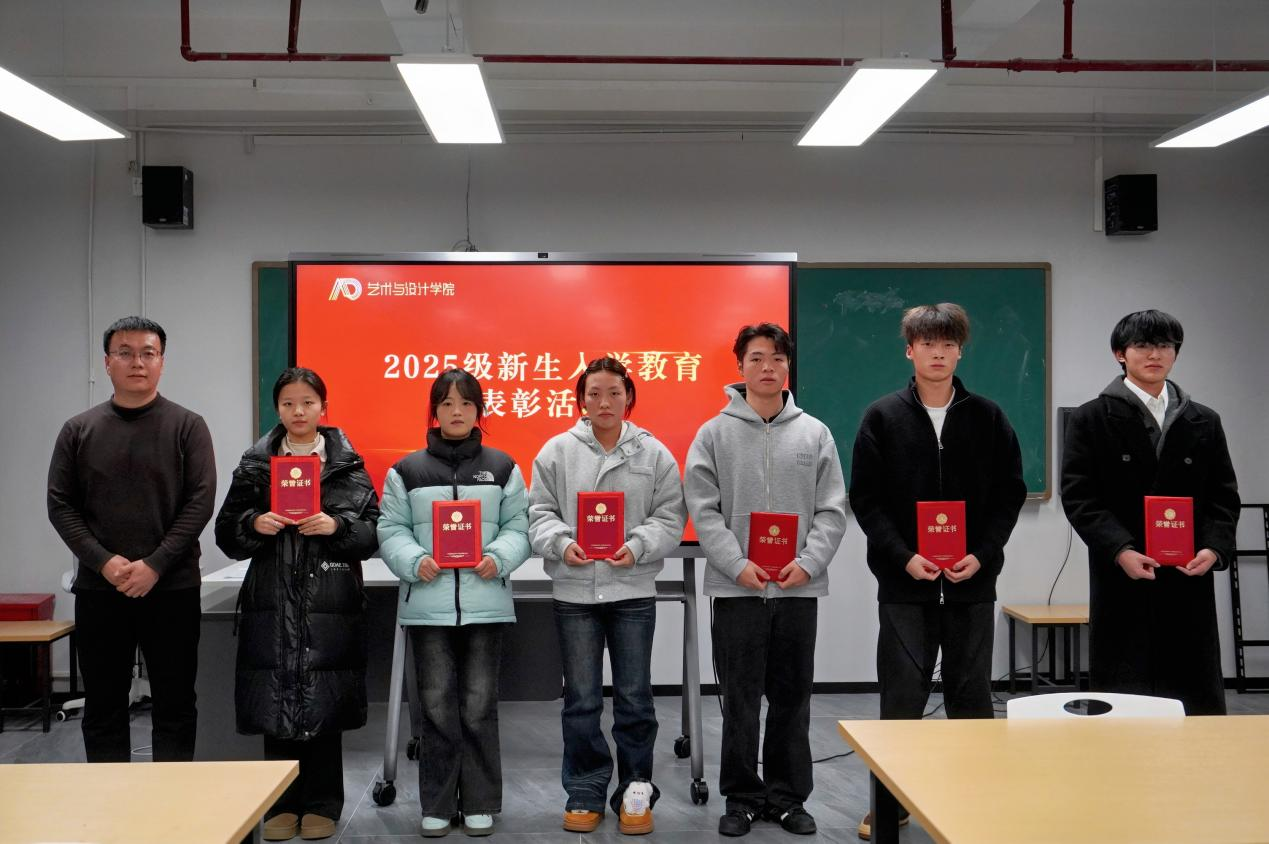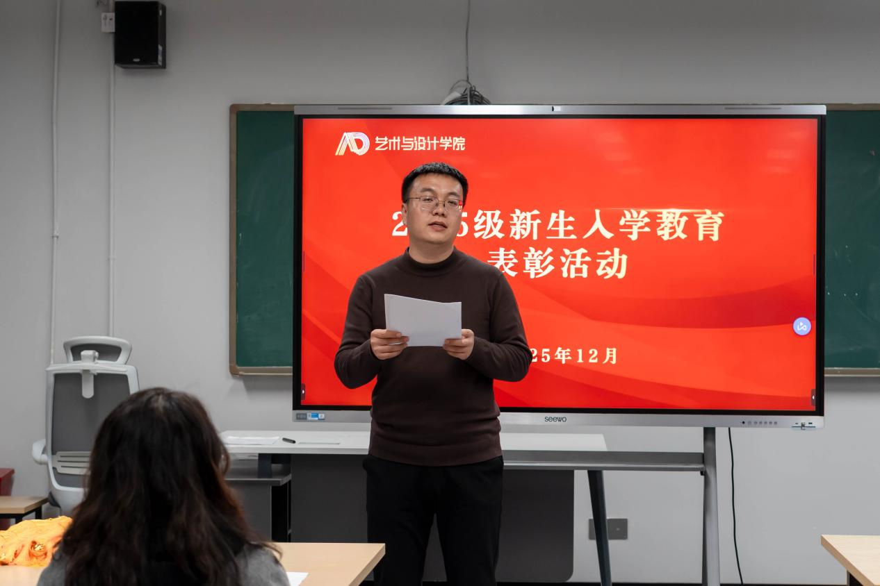 2025年12月2日下午,艺术与设计学院在敏行楼302教室举行2025级新生军训表彰大会。会议由饶庆梅老师主持,学院党委书记刘婕、党委副书记范少华、学生科何越老师出席,2025级新生辅导员、新生代表参加。