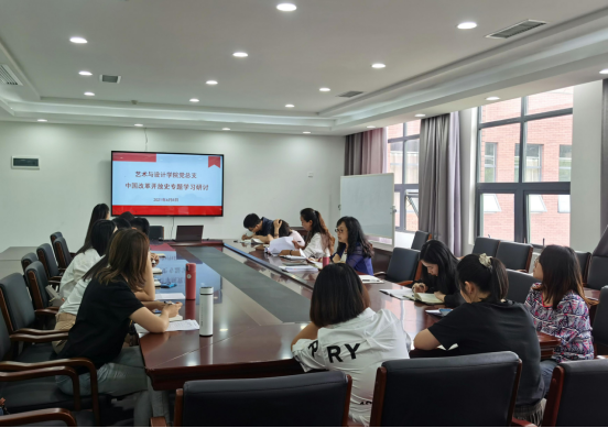2021年6月8日下午,艺术与设计学院党总支在科研楼334会议室开展党史学习专题研讨,重点围绕改革开放时期展开。专题研讨会由学院党总支书记王巧星同志主持。学院班子成员及全体党员教师参加了此次研讨。