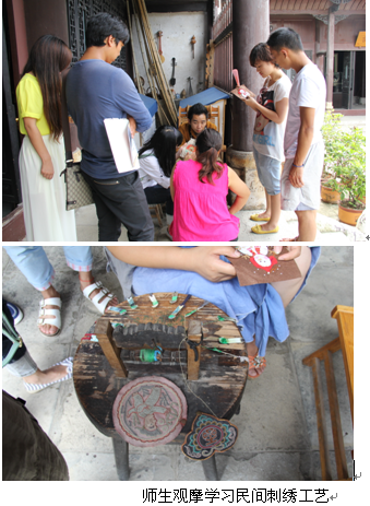 7月2日,我系王巧星、刘黎老师带领学生赴青岩古镇进行校外拓展课程。这次拓展主要参观了青岩古镇的民族文化。学生就青岩的贵州民族文化种类、工艺美术种类、历史文化背景、民风民俗、艺术市场现状等进行了细致的调研。对木雕、民族建筑、刺绣、蜡染以及现代艺术品原创设计等门类进行了仔细的采集和研究。