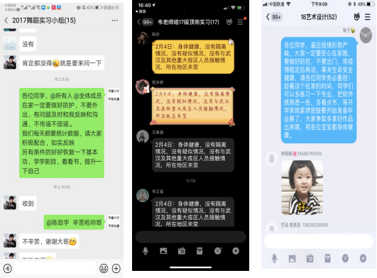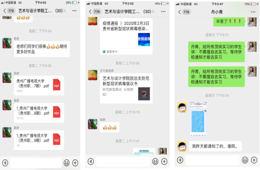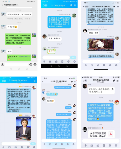 疫情防控工作事关师生健康,事关社会大局稳定。要把做好疫情防控工作作为当前的头等大事,坚决扛牢疫情防控政治责任,切实统一思想和行动,扎实做好疫情防控各项工作,引导师生树立坚定打赢疫情防控阻击战的信心。艺术与设计学院一方面要求实习指导老师、班主任密切联系自己管理的学生,通过交流谈心积极开展心理辅导和心理建设工作;另一方面,辅导员对学生疫情信息进行网格化排查和管理,重点对到过武汉学生、与湖北进出人员有接触学生的情况、学生返黔时间动向,复工情况等信息进行动态精准掌握。通过学生小组长、辅导员、实习指导教师、班主任、院领导多重把关,全方位排查,落实全体学生“日报告、零报告”制度。