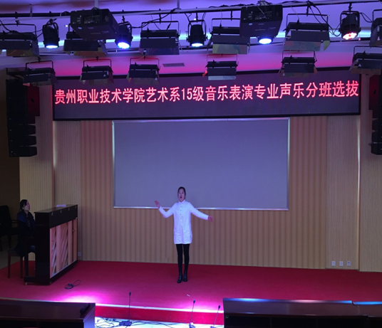 《声乐》课程是艺术与设计学院音乐表演专业核心课程,艺术与设计学院3月4日举行了15级音乐表演专业声乐分班选拔考试,此次选拔考试由音乐表演教研室声乐组全体教师参与并进行等级评分。每位学生演唱一首作品,根据同学们的演唱和舞台表现,专业老师进行等级评定,从而达到进行分层教学的目的。