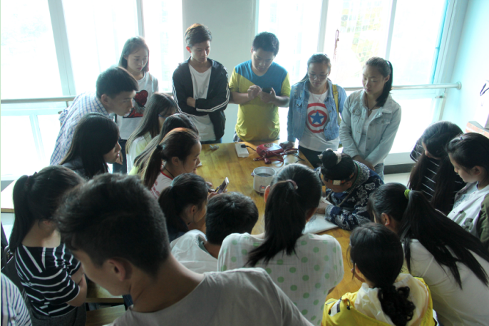 艺术与设计学院老师潘珺向大家介绍蜡刀的种类 |