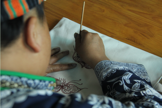 10月30日,艺术与设计学院在民族手工大师工作室举行非物质文化遗产——蜡染艺术培训会,丹寨百里苗族的杨二耶牛和开阳小花苗的侯俊英两位非物质文化遗产传承人来到我院,传授蜡染工艺技法并与现场的老师和同学们互动交流。