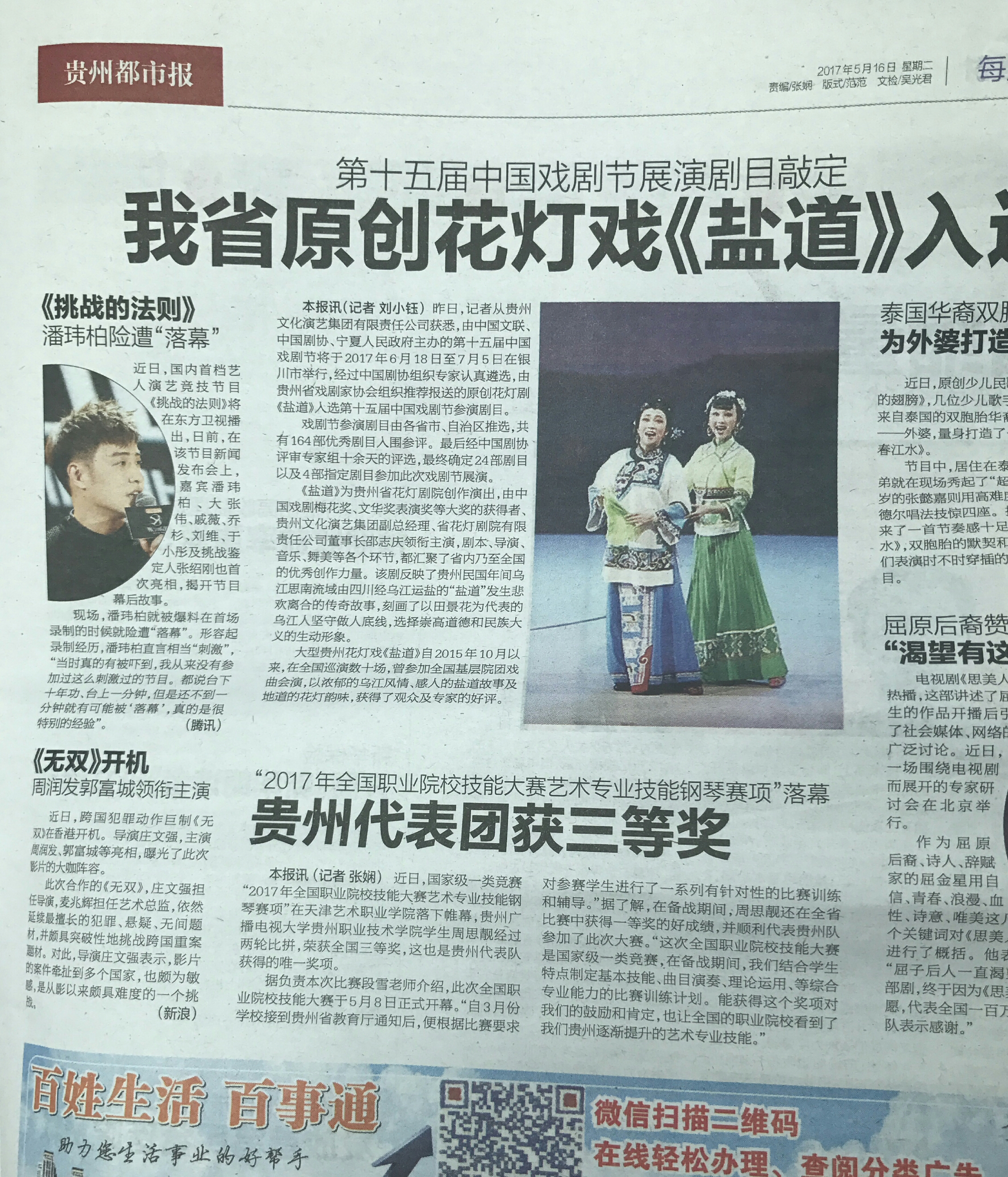 5月12日,为期4天的“2017年全国职业院校技能大赛艺术专业技能钢琴赛项”在天津艺术职业学院落下帷幕,我院2015级音乐表演班学生周思靓首次参赛,经过两轮比拼,发挥出色荣获三等奖。