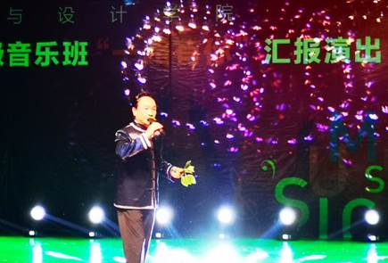 播音主持专业的演出特邀了贵州广播电视台金波老师担任晚会的主持;音乐汇演晚会上国家级非物质文化遗产木叶演奏家罗文军老师,为我们表演了以木叶为载体的乐器演奏。精彩表演一次次地把现场气氛推向高潮,增强了文化气氛的活泼性与艺术性。同学们在专业汇报演出这个大舞台上尽情展示文艺风采、凸显个性的魅力,感受着与优美同行,与高雅同行,与时代同行的快乐!