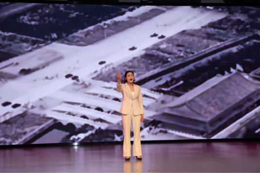 本场汇演共分为三大篇章。第一篇章“声影交织·岁月长歌”,通过朗诵、歌伴舞、喜剧、情景剧等5个节目,回顾不同年代青年人的奋斗与温情,结尾以朗诵《我们的青春》致敬过往。第二篇章“声潮澎湃·青春跃响”,包含小品、沉浸式声音剧、反诈主题小品等8个节目,生动展现生活百态与青春活力。第三篇章“声声不息·踏光而行”,涵盖情景剧、动画配音、汉服走秀、合唱、朗诵等6个节目,表达对过往的回望与对未来的期许。