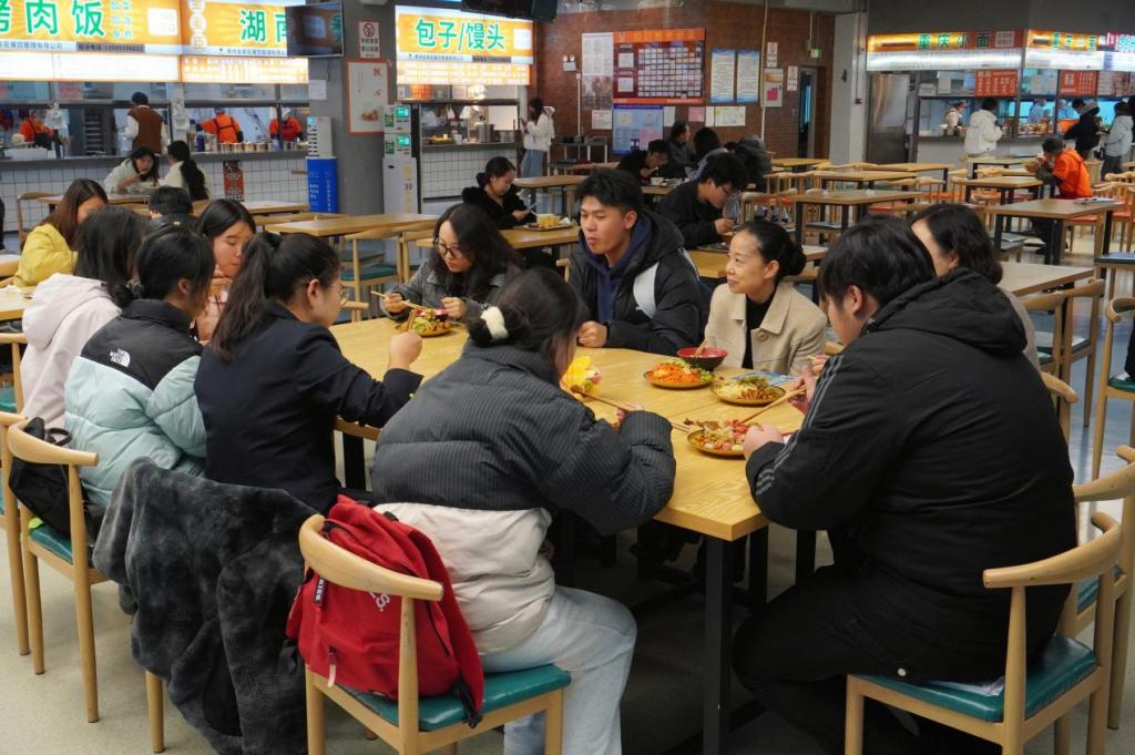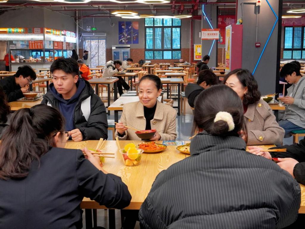用餐期间,张仁俊亲切询问同学们的专业学习、创作实践、生活住宿等情况,认真听取大家对课程设置、实训条件、后勤服务等方面的意见与建议。张仁俊与师生们深入交谈,并逐一回应关切,体现学校“以学生为中心”的育人理念。