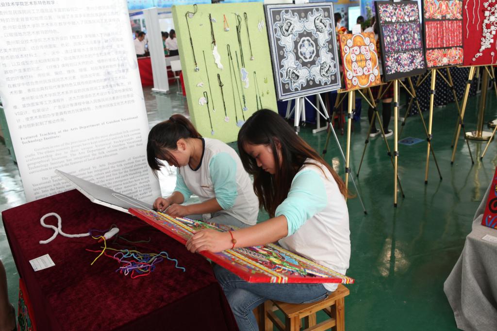 展会中学生的现场表演吸引着不少参展嘉宾驻足观看,独特的艺术形式表现着独特的贵州民族风采。
