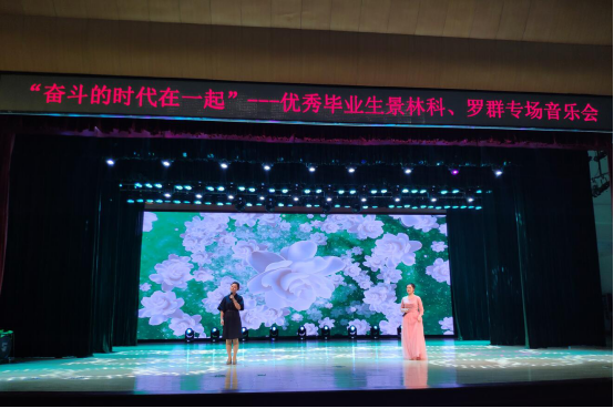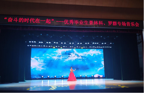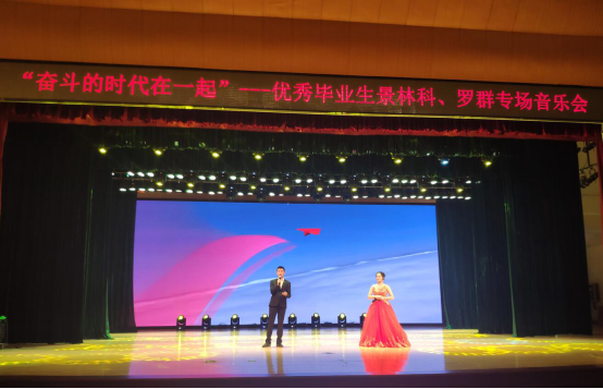 2019年5月23日晚7点由校团委主办、艺术与设计学院承办的“奋斗的时代在一起”之优秀毕业生景林科、罗群专场音乐会在我校大礼堂隆重举行。校团委副书记李雪芬老师以及各学院团总支书记、辅导员老师出席本次活动。全校师生代表800余人参加此次音乐会。