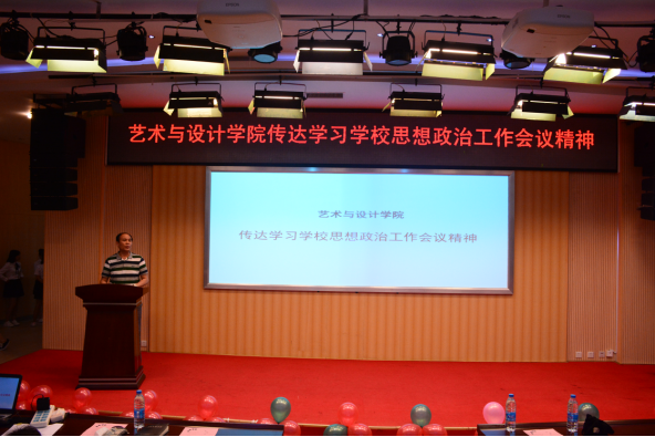 根据学校党委的安排和要求,为贯彻落实全校思想政治工作会议精神,2017年6月13日下午,艺术与设计学院在图书馆二楼报告厅组织学院全体教工、各年级学生代表召开学习传达学校思想政治工作会议精神。党总支书记梁正善同志首先传达了习近平总书记在全国高校思想政治工作会议上的重要论述和贵州省委书记陈敏尔同志在全省高校思想政治工作会议上的重要讲话精神。同时将学校党委6月12日召开的全校思想政治工作会议基本精神进行传达,并按照会上党委书记邓惠宾同志重点强调的要抓好七个方面的工作认真落实、落地、落细,创新性地做好思想政治教育各项工作。
