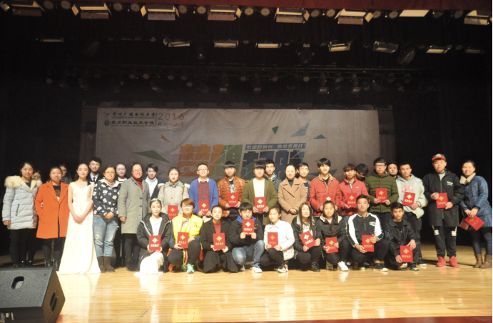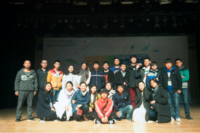 进一步丰富广大同学的精神生活,努力营造积极格调高雅、健康文明的校园文化氛围,由贵州职业技术学院团委主办,艺术与设计学院承办的第二届校园达人秀总决赛于2016年11月30日拉开序幕。担任此次活动的评委有校团委副书记李雪芬、商贸学院团总支书记汪浩萌、建工学院团总支书记邓福啦、经管学院团总支书记周秀芬、辅导员金廷芳。同时来自各个学院的老师和同学们也积极参加了此次活动。