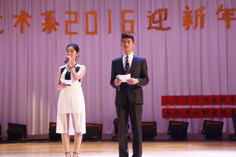 11月26日晚贵州职业技术学院大礼堂成为一片欢乐的海洋,我系学生举办“艺术系迎新年晚会”在此隆重举行。各系团总支书记及辅导员老师出席了本次活动。晚会内容丰富多彩、形式多样,包括舞蹈、歌曲串烧、小品、器乐等11个节目,整场演出精彩不断、美不胜收。