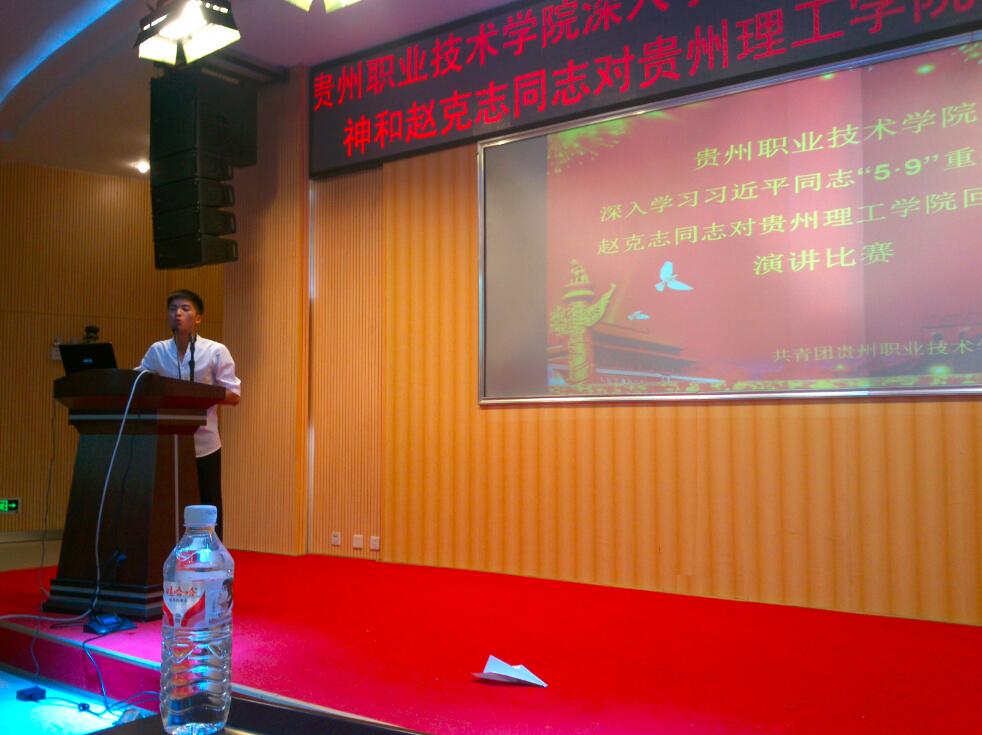 在6月18日由校团委举办的以深入学习习近平总书记“5•9”重要讲话和赵克志同志对贵州理工学院机自132班回信精神为主题的演讲比赛中,我系文朝洪同学以《青春与责任》为题的演讲获得个人三等奖。