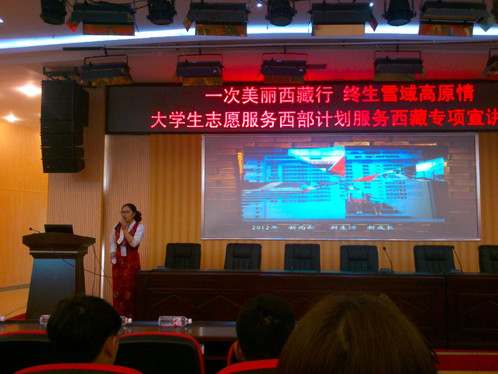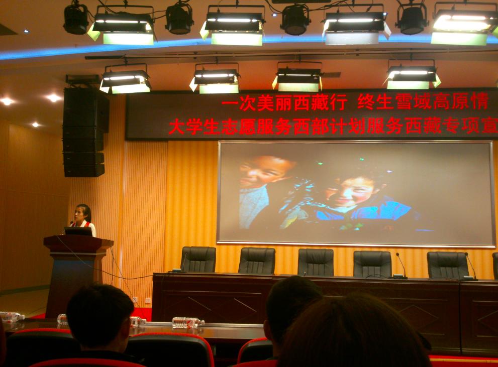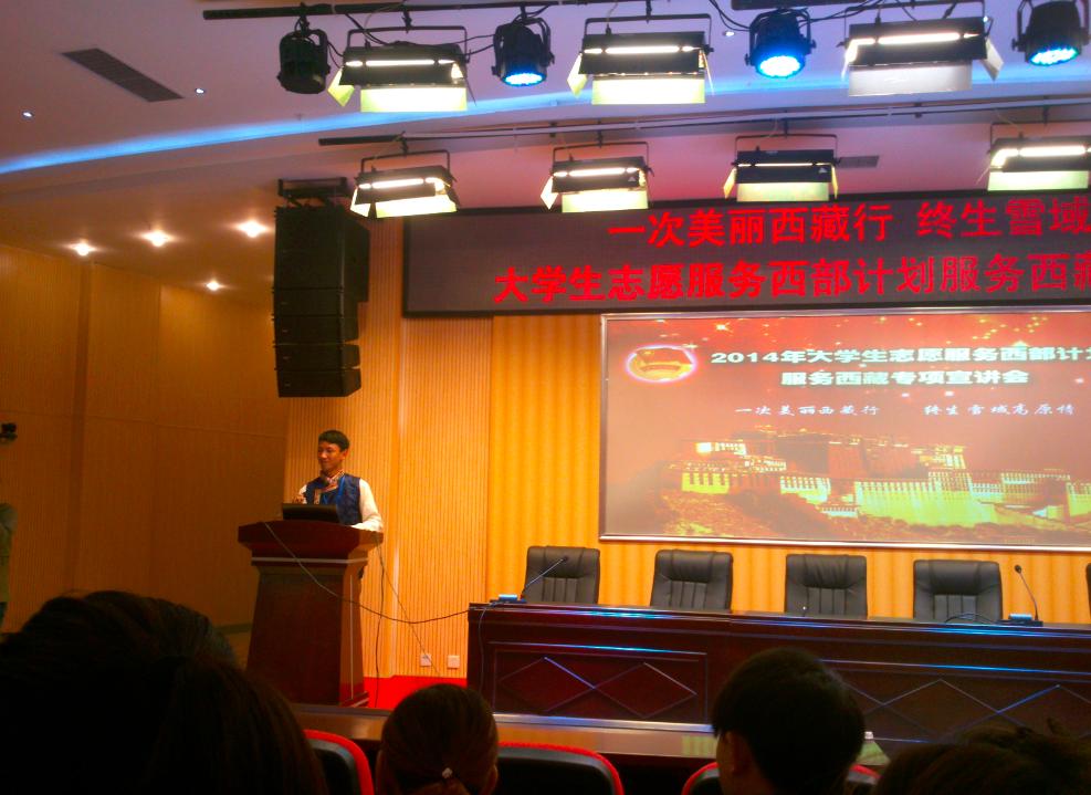 5月7日上午,大学生志愿服务西部计划服务西藏志愿者来我院做专项宣讲活动。志愿者们结合亲身经历及感受向我们讲述了在美丽的西藏工作、生活、学习的场景,描述了一幅美丽的西藏雪域高原之情。