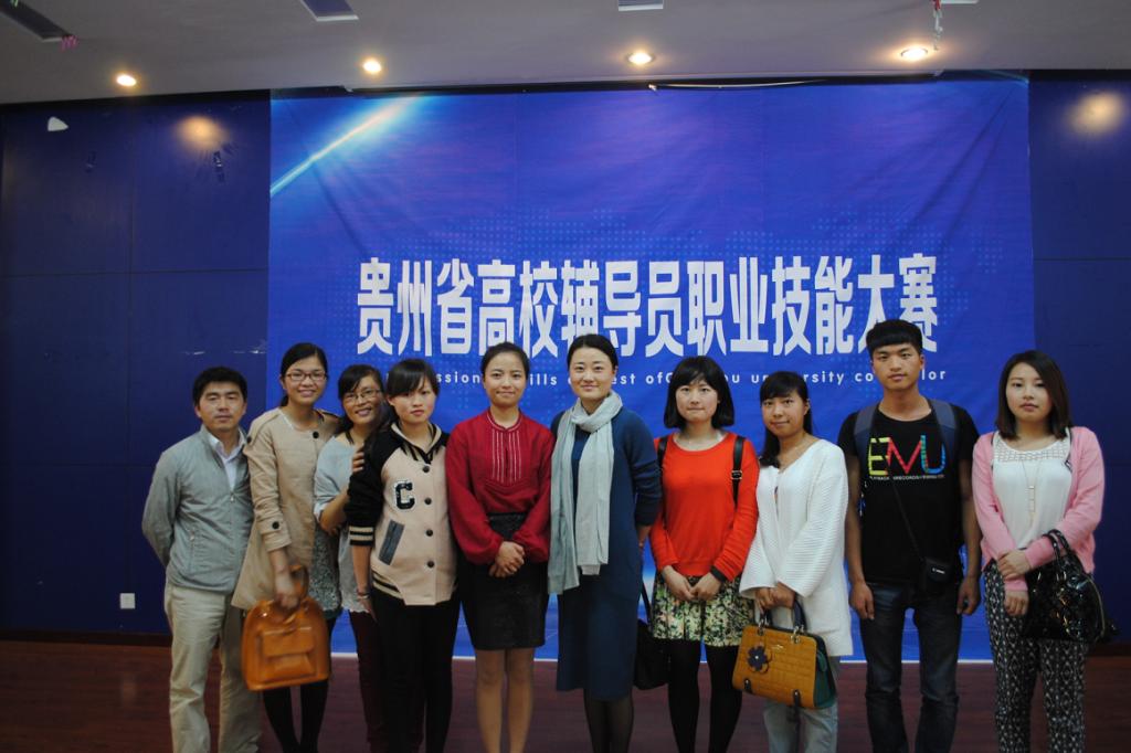 4月14日艺术系辅导员何洁代表贵州职业技术学院在贵州财经大学参加全省高校辅导员技能大赛,我院全体辅导员参加。此次比赛由我院学生处主办。