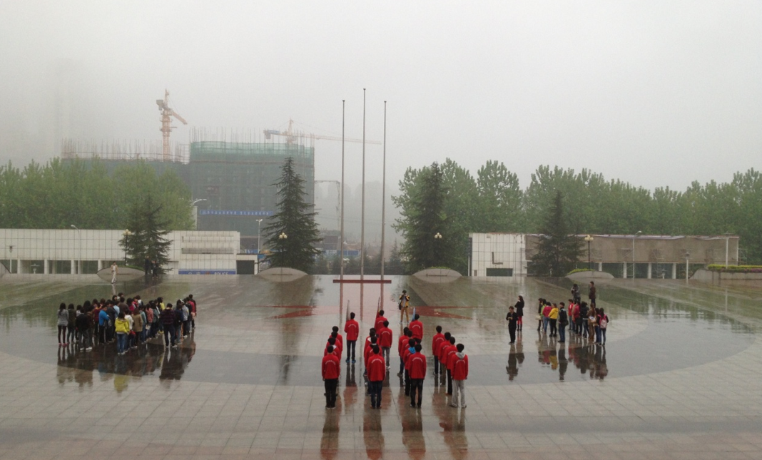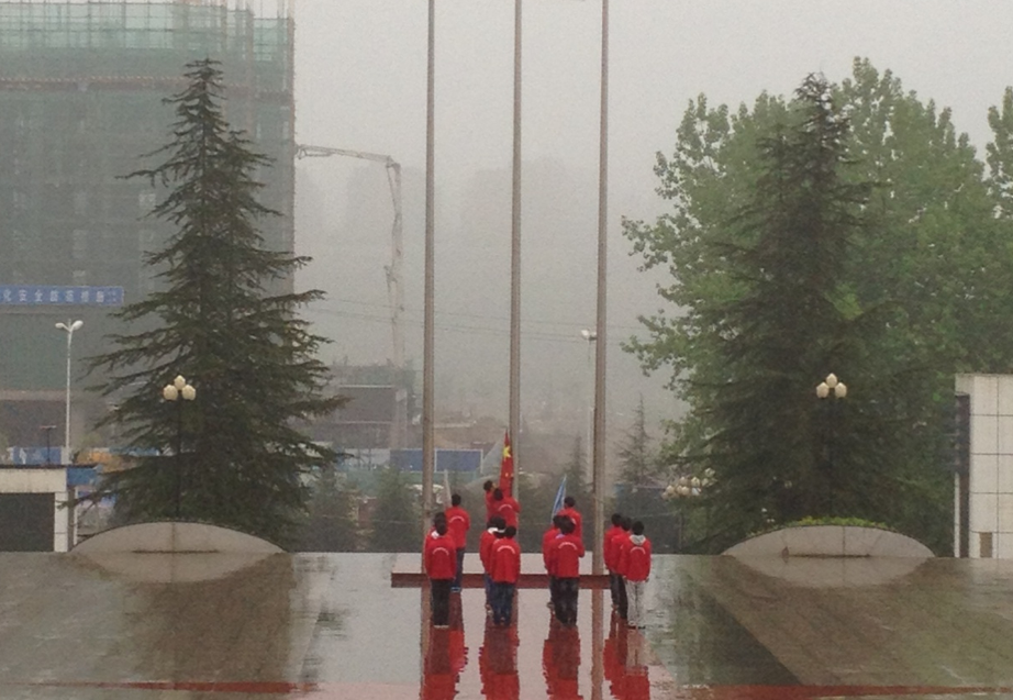 为了进一步深化学生一日行为规范,加强爱国主义教育,艺术系承担了本学期第六周学院升旗仪式。为搞好本次升旗仪式,我系在全系范围选拔优秀学生进行升旗仪式的培训,成立由20名学生组成的护旗队,为升国旗仪式作了积极准备。4月1日,迎着朝霞,沐浴着和风,艺术系2011级主持与播音班、音乐表演班、艺术设计(学前)班、艺术设计(应用)班,2012级艺术设计班、音乐表演班的全体同学们在操场上举行了庄严的升国旗仪式。仪式由2012级艺术设计班班长郎林同学主持,20名仪队穿着整齐的队服,排着整齐的队列,伴着《唱歌祖国》的音乐威武的出场,赢得了阵阵掌声。前面三位升旗手熟练的走向旗杆,在《国歌》声中五中星红旗冉冉升起,在进行了庄严的升旗仪式之后,由陈利同学做了《新学期新梦想》的国旗下讲话。