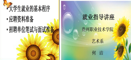 2012年12月10日,艺术系何洁老师针对2013届毕业生开展了关于就业指导的讲座,并与同学们分享了如何在实际工作中运用专业知识的经验,鼓励学生面对就业压力,树立信心,强化专业知识和技能,在未来的职场道路上坚定信念创造出属于自己的职场精彩。