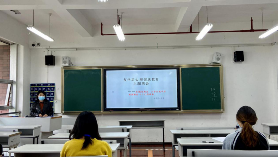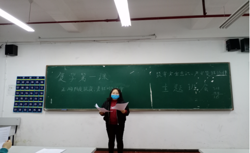 辅导员赵曼老师在5月26号下午在敏行楼303开展了复学第一课暨安全教育主题班会。强调疫情防控期间的安全管理规定及网贷、信息诈骗、打架斗殴,宿舍安全等事项,赵老师希望同学们做好个人疫情防护,服从学校疫情期间各项管理,在保护好自身生命财产安全的同时,加强防骗意识。