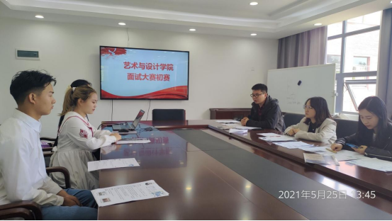 为给学院毕业生树立正确的就业观、择业观,建立就业规划和学习目标,增强心理素质,提高应聘能力和社会竞争力,同时贯彻落实学校就业促进周的相关工作要求,紧紧抓住当前毕业生、实习生求职关键期,艺术与设计学院于2021年5月25日,在科研楼334举办了模拟面试大赛学院初赛。学院共十余名学生参加此次比赛,辅导员老师担任此次面试评委。
